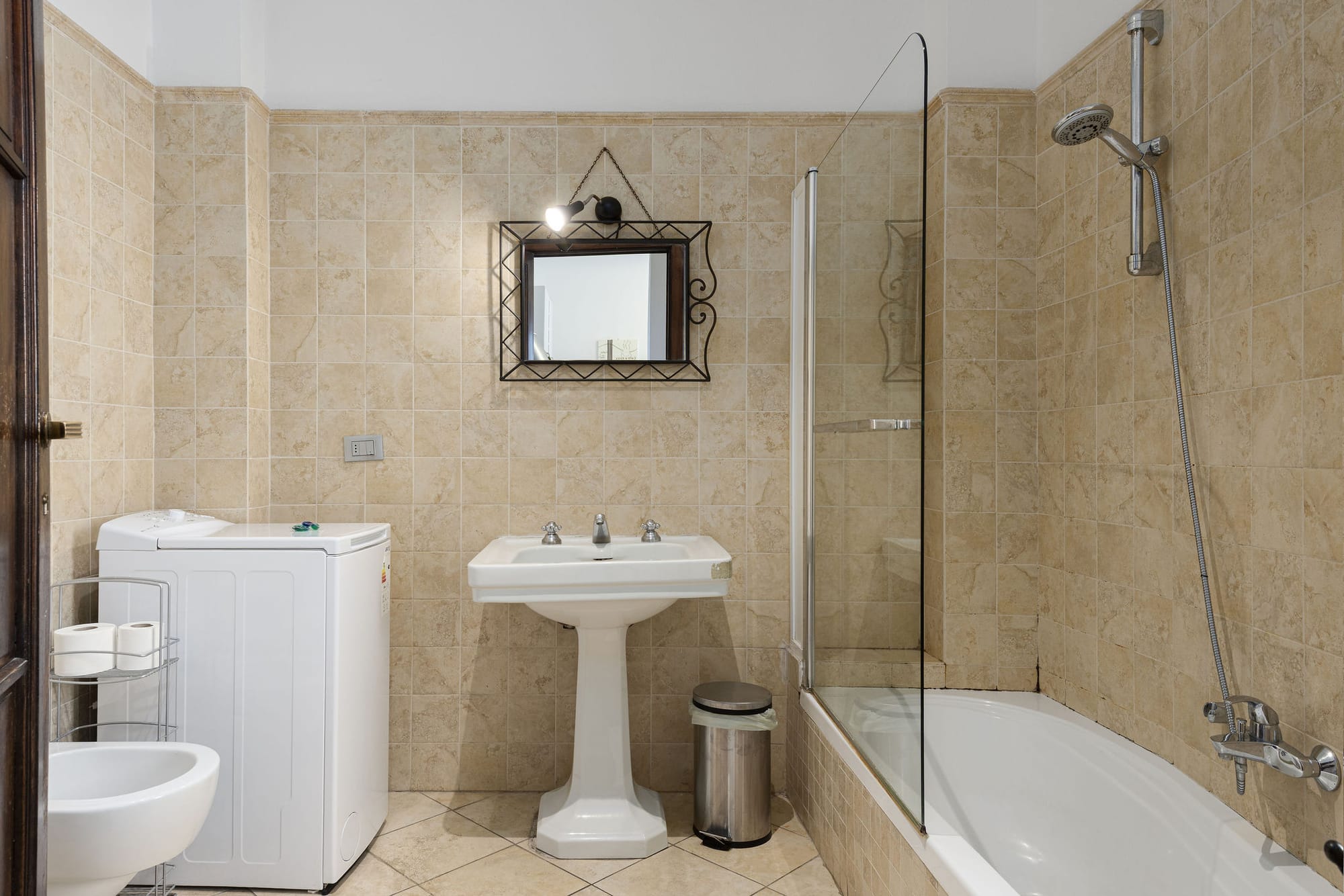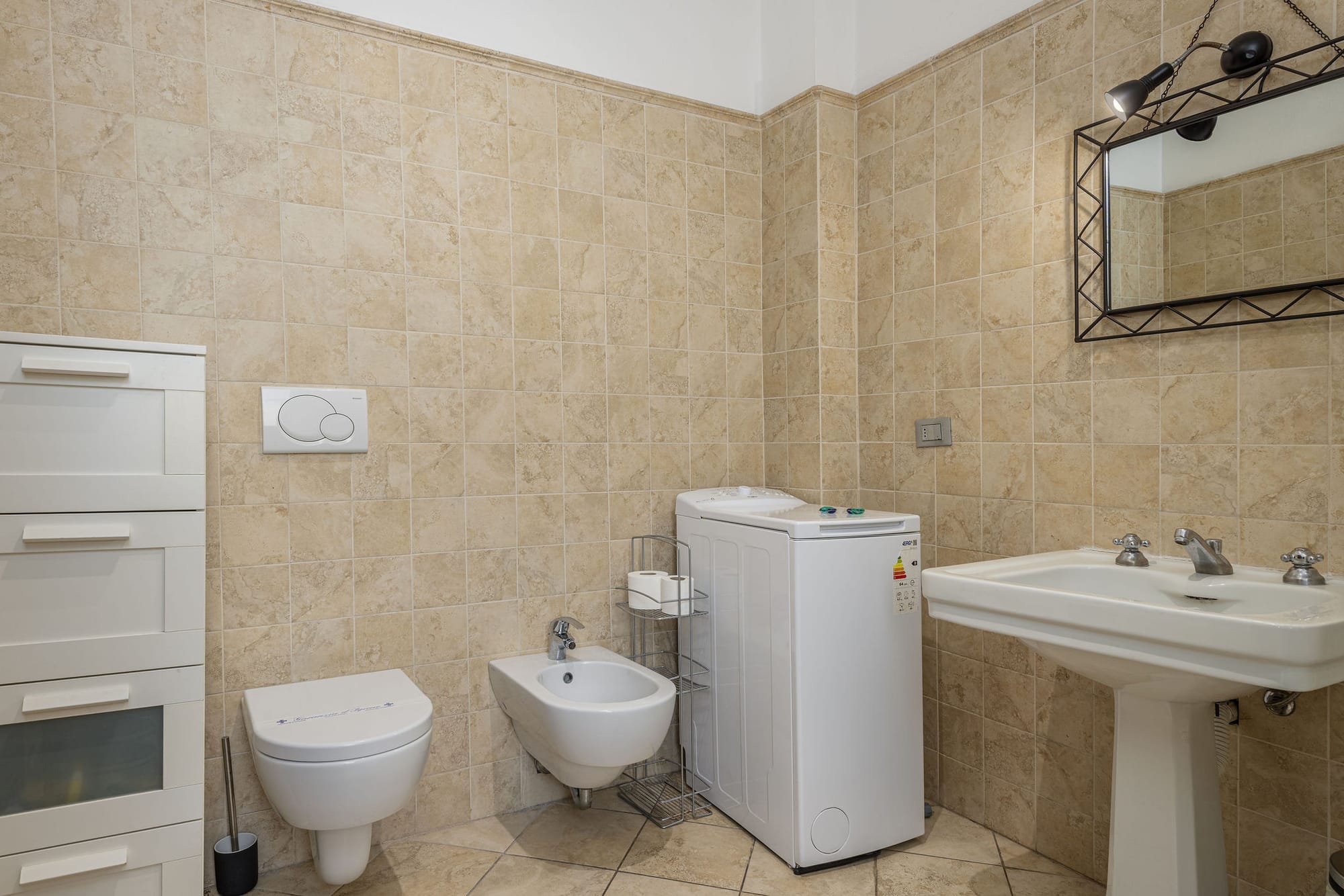Il bagno, moderno e funzionale, è completo di tutti i comfort, tra cui WC, bidet, lavabo, vasca da bagno e doccia. Inoltre, troverai una lavatrice, un asciugacapelli e una selezione di articoli da toeletta, come shampoo, gel doccia, detergente intimo, sapone, cuffia da doccia, per assicurarti ogni comodità.